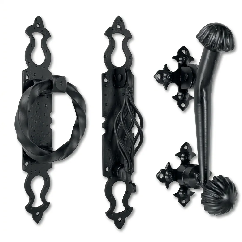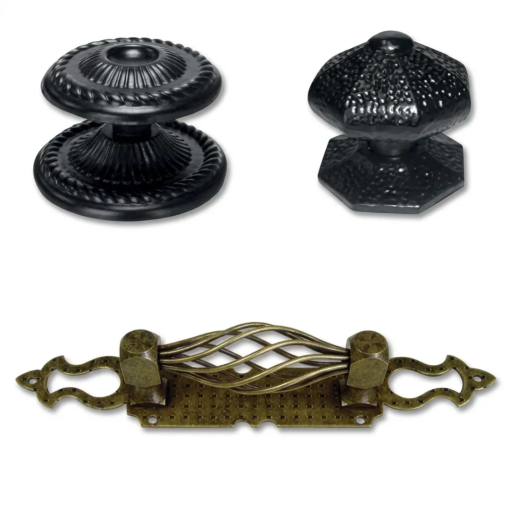 Cada pieza destaca por su acabado artesanal en negro o fragua, garantizando una resistencia excepcional. Desde los clavos decorativos hasta los grandes manillones de entrada, nuestros herrajes castellanos combinan la estética de antaño con la funcionalidad que exigen las puertas y muebles de hoy.