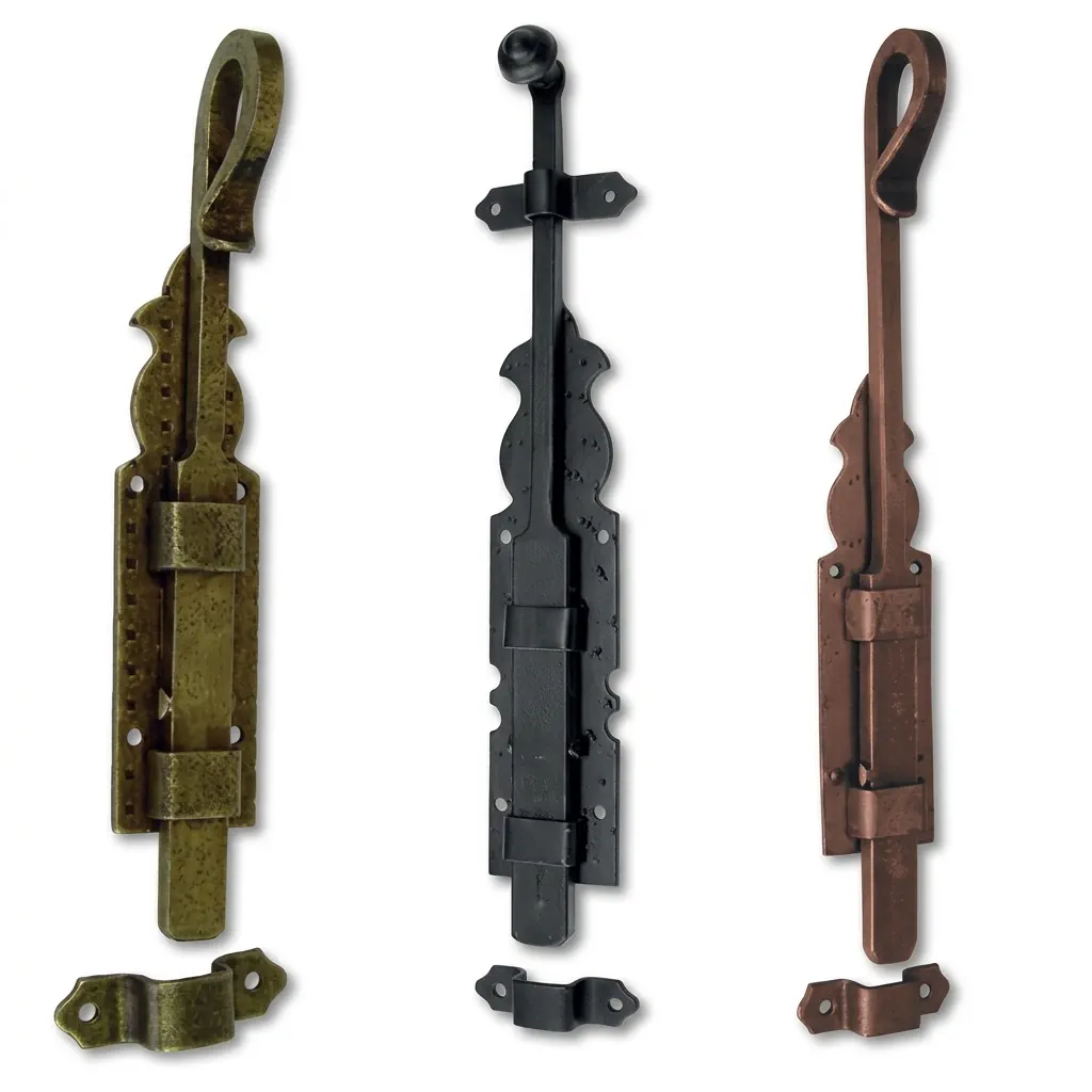 Seguridad con estilo antiguo. Pasadores y cerrojos de forja que protegen tu hogar manteniendo la coherencia estética de la arquitectura tradicional.