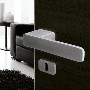 El minimalismo elevado a su máxima expresión. Rosetas de tamaño reducido que ceden todo el protagonismo a la manilla y al diseño de la puerta.